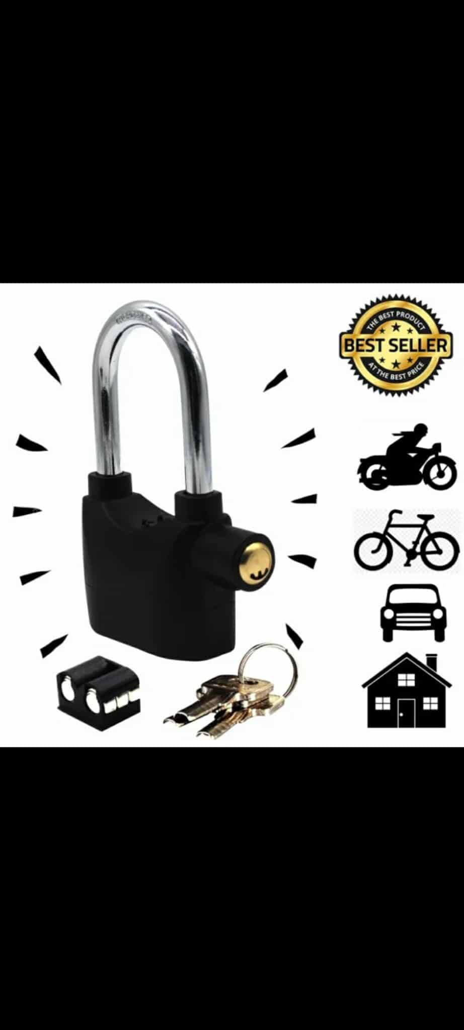 ?আপনার বাসা, অফিস, দোকান, শিল্প প্রতিষ্ঠান, মোটর সাইকেল, বাইসাইকেল ইত্যাদির নিরাপত্তায় এই এলার্ম লক ব্যবহার করতে পারেন। সামান্য আঘাত বা নাড়াচাড়া করলেই উচ্চশব্দে অ্যালার্ম বেজে উঠবে।